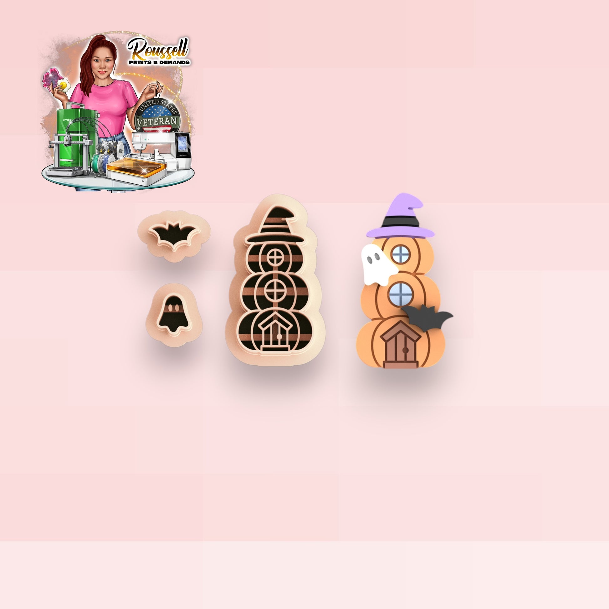 Pumpkin House with Ghost and Bat Polymer clay cutter